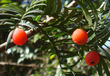 里南乡红豆杉群是绍兴市自然保护小区,近年来积极发展红豆杉新基地,这几天新栽种的红豆杉上的红豆红了,颗颗红豆惹人爱!