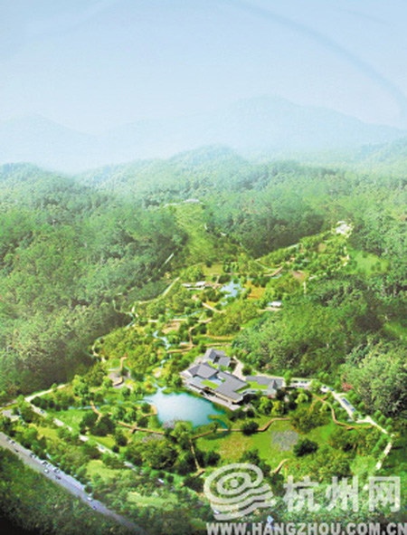 江洋畈不但有许多自然生长的蔬菜,还要建一个杭帮菜博物馆。博物馆用乡土味道的石材木材建,像杭州老民居,分两层,一层有展示区、研发区、品尝区,将展示南宋宫廷宴、东坡官府宴、杭州素食宴、西湖十景宴、翠竹宴等杭帮菜文化。二层有室外就餐平台等游客用餐区。