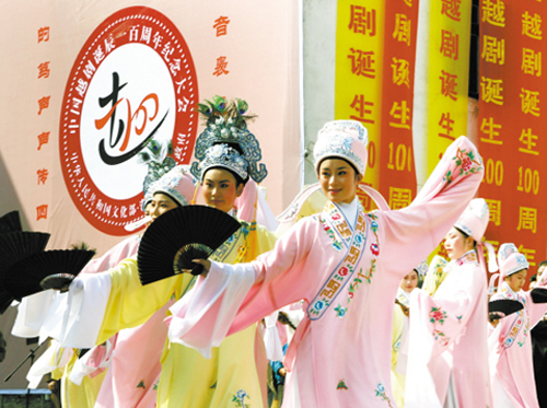 1906年3月27日,嵊州唱书艺人高炳火、李世泉等人相聚甘霖镇东王村,首次在用4只稻桶和门板组成的舞台上成功演出《双金花》。越剧,由此正式诞生。之后,越剧历经了小歌班、绍兴文戏、女子越剧等几个阶段,以其真切细腻的表演、委婉动听的唱腔、优美抒情的风格,从乡村一路唱进大上海,流行于全国。