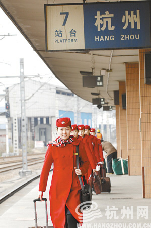 在衣着上,也很讲究细节。有位乘务员透露,早上她们从北京出发时穿的是毛皮靴子,快到杭州站时全部换成了单皮短靴。
