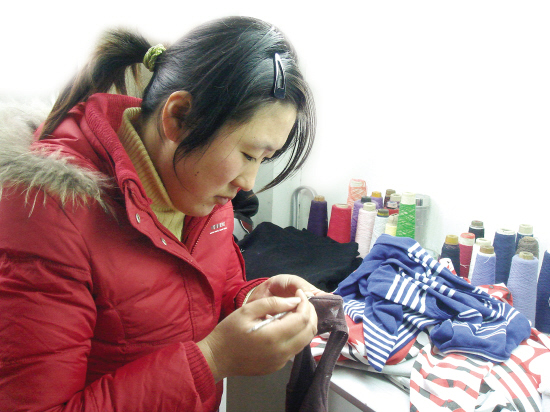 品质来自于用心。在横机车间工作的张玉沣发现,生产衣片的过程中,会出现因抽丝、漏针或断线等原因造成的疵点,她生产的衣片也不例外。每当发现衣片有疵点时,张玉沣会学着将其一一修补好,因此她生产的衣片几乎没有毛病。公司领导发现张玉沣的修补特长后,将她调到成衣车间做修补工。从此,张玉沣便与针线结下了不解之缘。