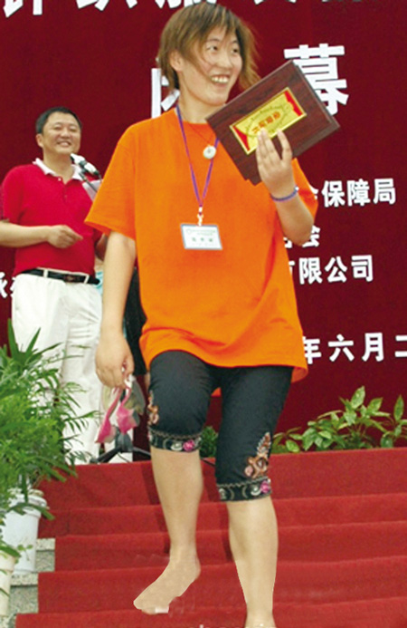 赤足拎鞋上台领奖的张玉沣