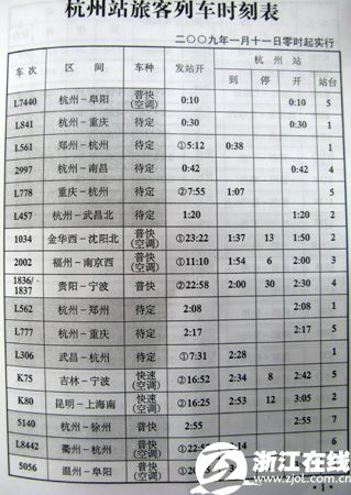 2009春运最新列车时刻表(1月11日起实行)