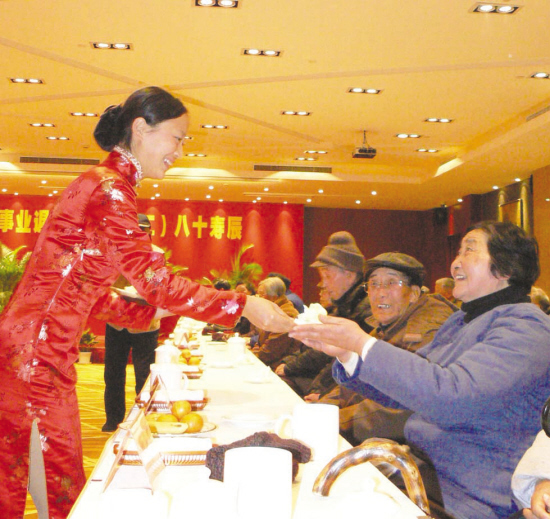昨日下午,49位市直机关、事业单位退休的“八十寿星”欢聚一堂,共同参加由市人事局组织的八十寿辰庆贺活动。鲜花、蛋糕、节目表演,整个生日宴会气氛热烈而温馨。据悉,市人事局每年举行八十寿辰集体庆贺活动,及时为退休老同志送上生日的祝福,弘扬了敬老、爱老的优良传统。图为老同志正在分吃蛋糕。