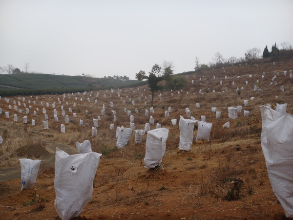 三九严寒已降临人间,刺骨的寒风,冰冻的大地,对一些去年新种植的小橘树来说,已进入了严峻的考验。近日来,黄泽镇的许多果农们给去年新开发种植的小橘树“穿”上了防冻衣。