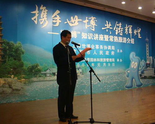 上海世博局国内参展顾问黄耀诚作了题为“世博会与城市发展”的世博知识讲座