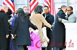 影星丹泽尔·华盛顿、汤姆·汉克斯、杰米·福克斯、奎恩·拉蒂法和世界头号高尔夫球手泰格·伍兹则相继上台朗诵历史名篇,或纪念任内颁布《解放奴隶宣言》的前总统亚伯拉罕·林肯,或回顾美国以往的奋斗历程。