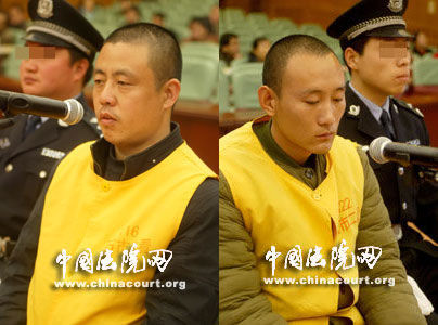 被告人张玉军(左)和张彦章。