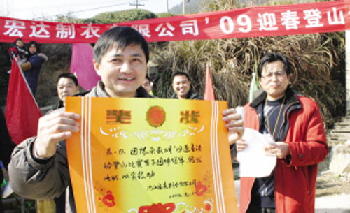 一元复始,万象更新。为增强员工身体素质,培养员工不畏艰辛、风雨同舟、顽强进取的团队精神,春节前夕,浙江宏达制衣有限公司组织举行了一场别开生面的2009年迎春文体活动:勇攀嵊州第一高峰——西白山登山比赛。