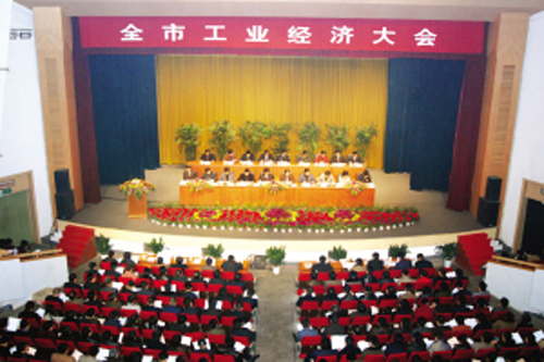 昨日下午,市委、市政府在嵊州剧院召开全市工业经济大会,回顾总结2008年工业经济所取得的成绩,全面部署2009年经济工作。市委书记郭敏在会上作重要讲话。市委副书记、市长盛秋平主持会议。市领导朱钦苗、王生灿、马志龙、王旭波、何国英、朱晓董、吕丙、闾小锋、宋国新、李宝仁、俞仲兴、夏春燕、赵祥军、郑法根、周晓东、马永信、孔志刚在主席台上就座。