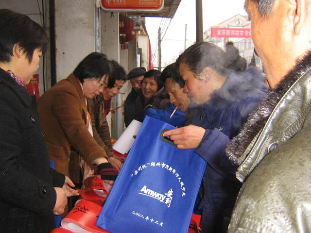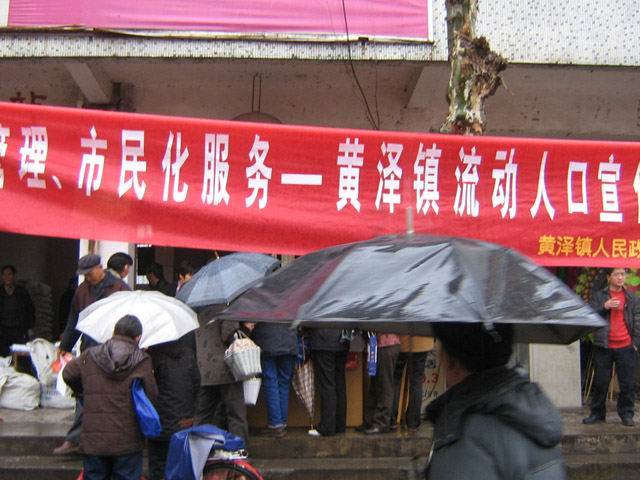 日,黄泽镇全体计生干部在东直街开展流动人口服务月活动,内容包括:赠送春联、《福》字、发放环保袋、有奖励知识问答、“三查服务”等。虽然天上飘着绵绵细雨,但挡不住服务者和参与者的热情,于往年相比,参与知识问答的群众明显增多,准确率也明显提高;领取避孕药具的育龄群众也不像往年那样拘谨;此次活动共分发宣传资料