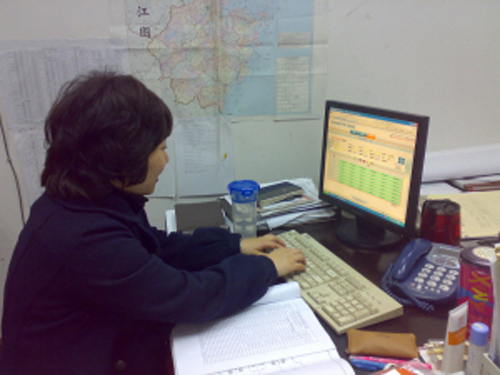 市房管会主办的嵊州市透明售房网http://www.zjszfc.gov.cn/近日开通,各家开发商的楼盘将按照规定陆续上网公布,今后每套房子的销售状况都可以上网查询。图为“明山桃源”的销售人员正在上传楼盘的销售情况。