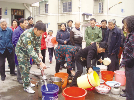 获悉此情后,市消防大队官兵主动承担送水任务,并在第一时间派出消防车为居民们送去生活用水。直至9日下午6时,消防官兵义务送水共16车、80余吨,解了社区居民的燃眉之急。