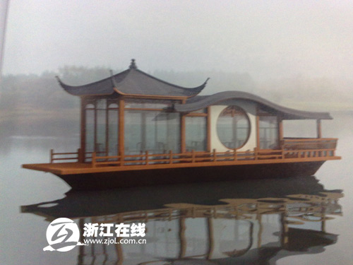 在船行设计方案中有着不少亮点,比如,将船型与“杭”字城标结合,巧妙地将亭子与户型圆拱墙结合起来,并在材料和色彩采用江南居民的白墙黛瓦,成为西湖流动真实的“杭”字城标。