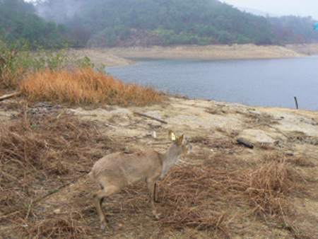 那么,为什么要把野化试验的场所选择在水库的孤岛上呢?这要从河麂的生活习性说起。河麂属食草动物,主要以树叶、野浆果及各种草类等为食,栖息在河岸、湖边等处,性喜水,善游泳。 “放养地点的选择大有讲究。河麂胆子很小,行动又很敏捷,水库中的孤岛非常适合河麂生存。”有关专家分析说,汤浦水库是常年禁猎区,环境封闭,岛上的野生动物不多,小灌木、杂草等植物丰富,为河麂提供大量的食物,为这次科学实验的跟踪、观察创造了条件。