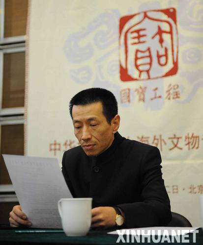 这是委托人蔡铭超,他是中华抢救流失海外文物专项基金的收藏顾问(3月2日摄)。中华抢救流失海外文物专项基金副总干事牛宪峰3月2日在于北京召开的新闻发布会上说,中华抢救流失海外文物专项基金收藏顾问蔡铭超参与了圆明园兔、鼠首在法国巴黎的拍卖,并成为了最后竞拍者。牛宪峰告诉记者:虽然蔡铭超以总计3149万欧元的价格在法国巴黎拍下了圆明园兔、鼠首,但由于尚未付款,且目前仍在付款期限内,因此拍卖能否最终成交尚属未知。新华社记者 罗晓光 摄