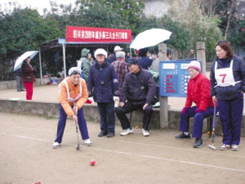 为庆祝三八节,由绍兴市体育总会、绍兴市门球协会主办的2009年绍兴市老年女子门球赛于3月7日至8日在我市举行,共有7支代表队60余人参加比赛。