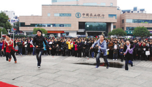 昨日,市妇联、市司法局和市劳动保障局联合举办了一场以 “学法律、懂心理”为主题的庆“三八”广场宣传活动。活动现场,来自21个乡镇街道的妇女代表踊跃参加法律、心理知识抢答。图为妇女代表跑步抢答的场景。