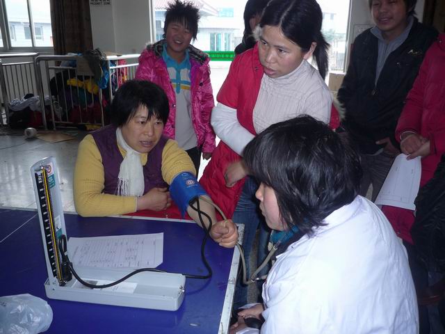 3月3日上午,甘霖人民医院医疗小队早早地来到了位于甘霖镇苍岩的奔奔服装厂,为该厂的100多名工人进行了免费的健康体检和健康咨询。并有49名外来务工人员参加了肝功能检测、艾滋病监测等项目的检查。体检时一外来务工者说,这样的送温暖活动把温暖送进了他们的心窝里,让他们切实感受到了政府对外来务工人员的关心,希望以后医院能够多组织这样的活动。