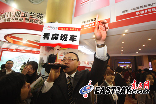 李女士和自己的朋友汪女士一起来房展会。李女士说他的儿子已经三十岁到了适婚的年龄,现在正筹划着买房子。徐泾的小户型房子吸引了李女士的目光。“那个房子今年年底能交房,他们现在还没有定价。不过徐泾太远了,我不可能让儿子住过去。如果他结婚后,我会和他换房子,让他住在现在长宁区的老房子。”虽然房屋的均价还没有报出,但是李女士还是坐上看房的班车。