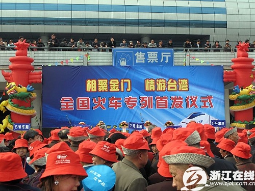 浙江在线3月12日义乌讯(特派记者 叶海) “盼了好多天了,就等着这趟火车了。”站在火车站广场上,69岁的义乌老人朱友仙精神抖擞。短暂的出发仪式之后,她和其他千名老人踏上了旅游专列,开始了他们台湾游的旅程。