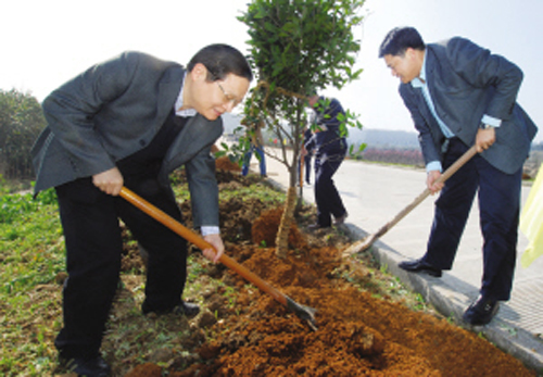昨日上午9时许,剡湖街道漩泽墅村村口来了一群特殊客人,他们是前来义务植树的。市领导郭敏、盛秋平、朱钦苗、马志龙、王旭波等副市级以上领导和市级机关有关部门负责人一起参加植树活动。