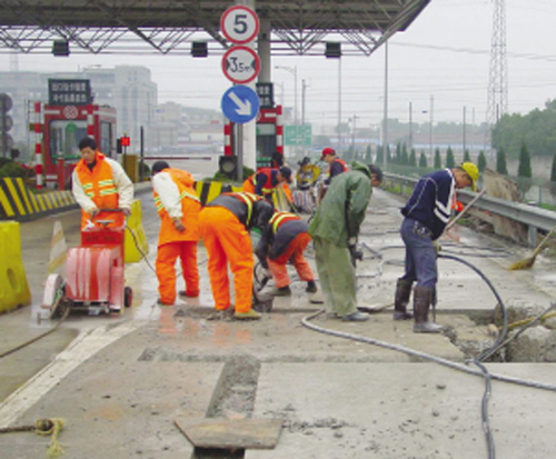 据了解,实行计重收费后,可有效遏制超限超载车辆,减少事故的发生,提高车辆在高速公路上的运行质量和效率。同时,也可延长公路的使用寿命。图为工人们正在作业。
