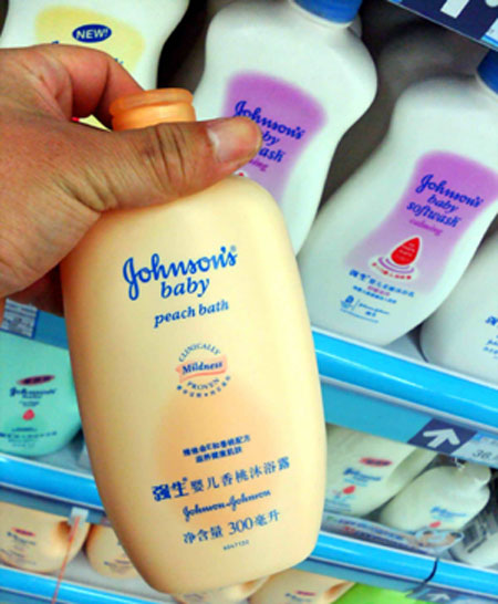 新华网上海频道3月19日报道:3月17日,美国一非盈利消费者组织最新发布检测报告称,目前市场上销售的强生婴儿卫浴产品中一些含有甲醛及“1,4-二氧杂环乙烷”等有毒物质。16日,上海市工商局表示,暂时没有接到国家工商总局发出的撤柜通知。为了慎重起见,家乐福、农工商等超市已经对部分相关商品进行暂时下架处理。但是部分超市仍销售如常。新华社签约摄影师 井韦摄