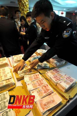 可当民警当场打开了他手中的手提箱时,他顿时蔫了。箱子中,十几摞码得整整齐齐的钞票,还散发着油墨香。经清点,正好58万元,而且全是假钞。