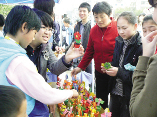 童话木偶、塑料盆景、纸花杯、时光笔……昨日,由团市委主办的市首届青少年“创意集市”在市文化广场“开锣”,这些由青少年们自己创意的作品,纷纷以几元或几十元的价格出售,场面十分火爆。据悉,此类创意大赛将贯穿全年,旨在让青少年用灵感和创意成就价值,从小培养创新意识。