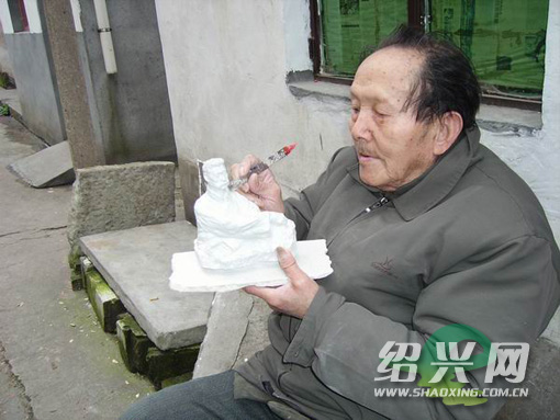今年86岁的吕焕成老人是嵊州市黄泽镇人,一生从事泥雕艺术,练就了一手人物泥塑绝活。近日,吕老伯正忙着把黄泽镇白泥坎民乐、哑背疯等非物质文化做成泥塑,以便为该镇文化做一张特别的“名片”。