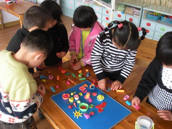 本学期来,黄泽镇中心幼儿园积极利用橡皮泥开展手工制作课教学,引导孩子们运用手中的橡皮泥,展开无穷的构思与联想,看!孩子们在学中玩,玩中学,动手又动脑。