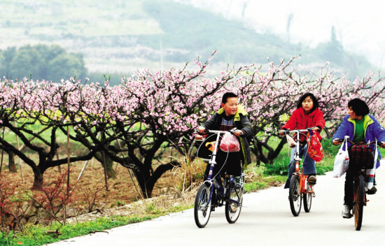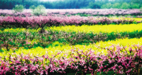 其实我们嵊州也有观赏桃花的胜地。沿澄潭江而上,从施家岙到殿前,连绵十多里,一路都是盛开的粉红色的桃花。成千上万株桃树缀成粉红的花潮,沿着绿色的田野,向我们眼前奔涌而来。放眼望去,漫山遍野之中桃花的身影分外妖娆,沐春临风,和颜悦色,向人们展示着婀娜的身姿。苍岩的十里桃花林为居住在闹市里的人们营造了一个休闲娱乐、踏青赏花的绝世佳境。