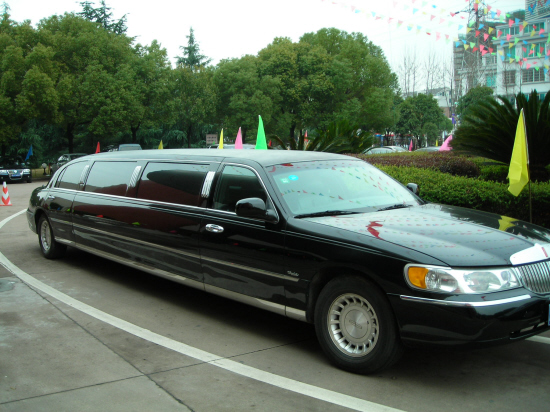 随着市民物质水平的不断提高,豪华轿车开始更多地“开进”剡城市民的生活。图为停在市区某宾馆门口的加长林肯车。