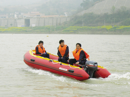 3月20日上午,随着渔政执法人员把一艘专用橡皮渔政船推进曹娥江,全市首艘渔政船正式投入使用。据了解,全市共有水面61764亩,其中江河渔业增殖水面25569亩。近年来,部分地区电鱼、炸鱼、药鱼等现象时有发生,影响了我市天然水域渔业资源保护和增殖。据悉,这艘专用渔政船今后将不定期在全市开展水上渔政执法巡查,保护我市天然水域渔业资源安全和增殖。
