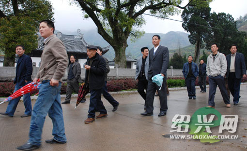 今年的3月29日是书圣王羲之后裔自发祭祖朝圣的日子。一大早,来自国内外的500余位王羲之后裔代表,在嵊州王羲之故居旅游区里瞻仰和王氏宗祠、金庭观、王羲之墓缅怀书圣。图为王氏后裔通行王羲之故居旅游区的现场。