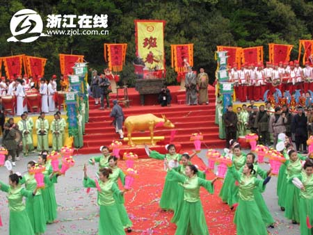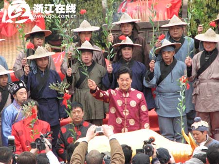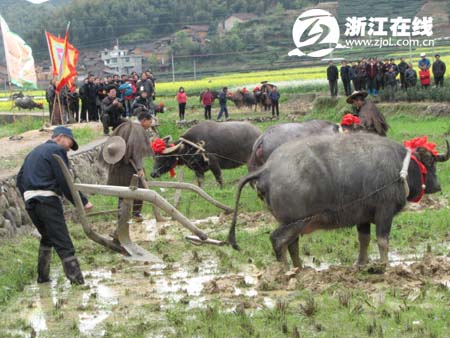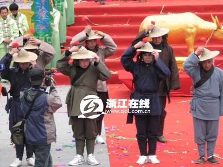 浙江在线·旅游新网3月30日消息(记者 阿童 文/摄) 布谷催春,江南始耕。今天上午,四百年前规模宏大的“班春”典礼在浙江遂昌大柘镇重现。这也是昨晚开幕的2009遂昌“汤显祖文化·劝农”节暨遂昌休闲游活动的重头戏之一。