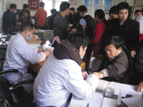 连日来,三江街道中心卫生院组织开展服务企业、服务“新三江人”专题活动,深入企业进行健康教育宣传,为外来务工人员免费体检等,累计惠及人数达5800多人次。图为在宏泰针织制衣有限公司开展服务的场景。