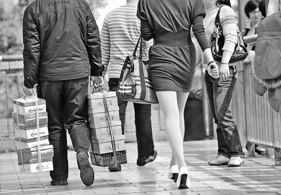 下午2点,太阳正好。记者站在天桥下抬头看,透过透明玻璃,看到了五彩缤纷的条条美腿,有的穿着严实的裤子,有的露出一截小腿,有的小腿全露。