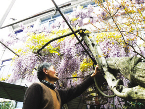 据介绍,鲁大伯庭院里的紫藤花每年3月按时开放,紫藤花花香四溢,周边村民纷纷闻香而来,许多亲朋好友也慕名前来参观。昨日下午,一位来自下王镇的任先生在观看了鲁大伯家的紫藤花后感慨地说,这是他第一次看到这么大、这么高、这么多的紫藤。