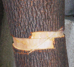 “是谁这么缺德,把这棵种了10余年的香樟树的树皮剥掉,这样树有可能会枯死。”昨日,家住崇安里的钱先生反映,在崇安里3幢4单元前面的人行道上,一棵行道绿化树被恶意剥皮。钱先生希望通过媒体提醒大家:爱绿护绿是我们每个人的责任。 记者从园林部门了解到,每年总有数棵树被人为破坏,这种剥皮毁绿的行为虽说只是个别现象,但其行为实属恶劣。这位工作人员还告诉记者,树木一旦被环形剥掉树皮,该树便因为得不到水分、养料的补充而逐渐枯萎,最终死亡。因此,无论是个人还是单位,在没有征得有关部门的同意下,都无权砍割毁坏城市的行道树,私自砍伐树木者必须责令改正和赔偿损失,希望广大市民爱护一草一木,并积极举报违法行为。