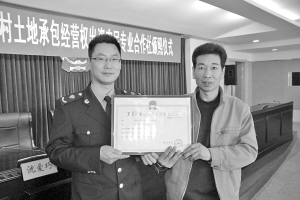 新华网长三角频道4月9日消息:8日上午,龙湾区瑶溪镇苏川村村民王建崇喜笑颜开地从龙湾区工商分局领到了“苏川果树种植专业合作社”的营业执照,与以往不同的,王建崇这次不用拿一分现金,而是用自家的3亩多地12年的经营权作价1万元入的股,作为大股东,他还成了该社的法人代表。记者从市工商局了解到,这是我市第一家准予农民以土地承包经营权入股成立的专业合作社。