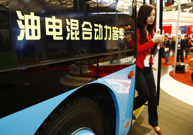 近日,汇聚了全球180家客车及零配件生产企业的世界客车博览亚洲展览会在上海新国际博览中心举行,海内外各家制造商推出的新能源客车和各类节能技术成为本届展会的一大亮点,吸引了众多买家的关注。新华社记者 裴鑫摄