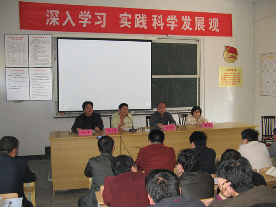 首先,陈学军校长布置了学校开展学习实践科学发展观活动的具体安排,接着,马副校长作了辅导报告。他从国际、国内、党内不断呈现的新问题入手,阐述了学习实践科学发展观的理论意义、实践意义和党建意义。马副校长介绍了科学发展观产生的历史背景。科学发展观是根据社会主义初级阶段的实情提出的,国家正逢西部大开发、中部要崛起、东北要振兴、东部要加快发展的时机,经济实力虽显著增强,但生产力水平不高,问题仍然较多;科学发展观是总结了社会发展实践提出来的,社会经历了发展物质文明期、狠抓精神文明期、提出政治文明期和现在倡导的社会文明与生态文明,五大文明一起抓,为科学发展增活力;科学发展观是借鉴了国外的经验提出来的;科学发展观也是适应新的发展需求提出的,社会资源由原来的农村流向城市、农业流向工业、农民流向市民转变成现在的工业反哺农业、城市发哺农村。最后阐述了科学发展观的内涵。科学发展观是“中国特色理论”和“三个代表”的继承,第一要义是发展,核心是以人为本,基本要求是全面、协调、可持续的发展,其根本的方式是统筹兼顾。