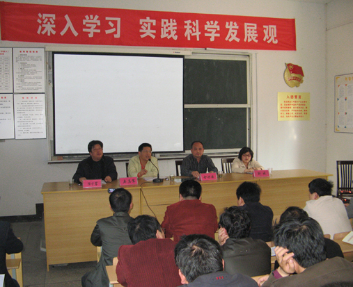 首先,陈学军校长布置了学校开展学习实践科学发展观活动的具体安排,接着,马副校长作了辅导报告。他从国际、国内、党内不断呈现的新问题入手,阐述了学习实践科学发展观的理论意义、实践意义和党建意义。马副校长介绍了科学发展观产生的历史背景。科学发展观是根据社会主义初级阶段的实情提出的,国家正逢西部大开发、中部要崛起、东北要振兴、东部要加快发展的时机,经济实力虽显著增强,但生产力水平不高,问题仍然较多;科学发展观是总结了社会发展实践提出来的,社会经历了发展物质文明期、狠抓精神文明期、提出政治文明期和现在倡导的社会文明与生态文明,五大文明一起抓,为科学发展增活力;科学发展观是借鉴了国外的经验提出来的;科学发展观也是适应新的发展需求提出的,社会资源由原来的农村流向城市、农业流向工业、农民流向市民转变成现在的工业反哺农业、城市发哺农村。最后阐述了科学发展观的内涵。科学发展观是“中国特色理论”和“三个代表”的继承,第一要义是发展,核心是以人为本,基本要求是全面、协调、可持续的发展,其根本的方式是统筹兼顾。