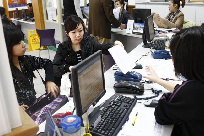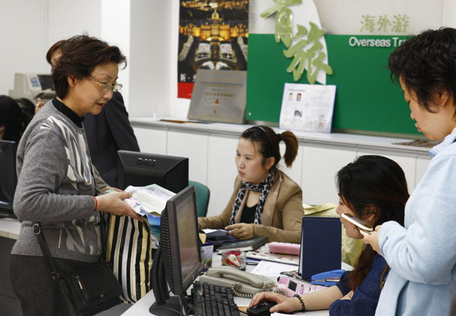 4月14日,两名赴泰游游客正在上海一家旅行社内办理退团手续。