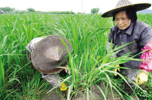 在鹿山街道江夏村茭白基地,农户们正忙着给茭白删苗,并进行耘田除草,以保证茭白的产量与质量。再过一个月左右,春茭将陆续上市,而这段时间,是田间管理最重要的时期。茭白是鹿山街道大力发展高效生态农业、实现农民增收的主导产业,江夏茭白基地现有茭白面积3000多亩,每年为农民增收2000多万元。
