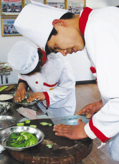 在经过为期一个月的培训后,嵊州市中级厨师培训班顺利开考。据悉,这是嵊州市首个免费培训开考的中级厨师班。图为4月11日,嵊州市首期农民中级厨师班开考的现场。