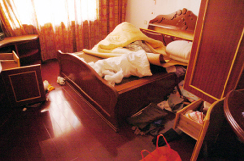 小偷入室盗窃后,房间内一片狼藉。