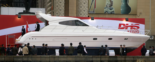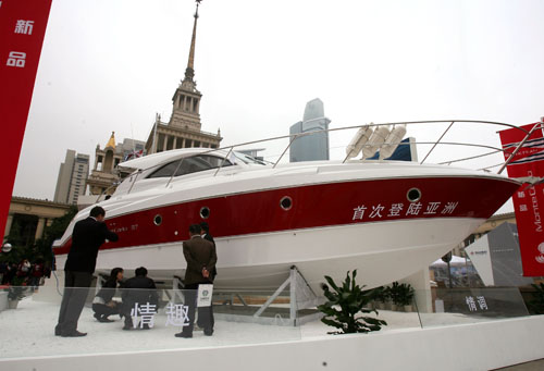 新华网上海频道4月16日报道:4月16日,为期四天的“2009中国(上海)国际游艇展”在上海展览中心开幕,有海内外的300余家展商参展,其中逾百艘实船亮相。